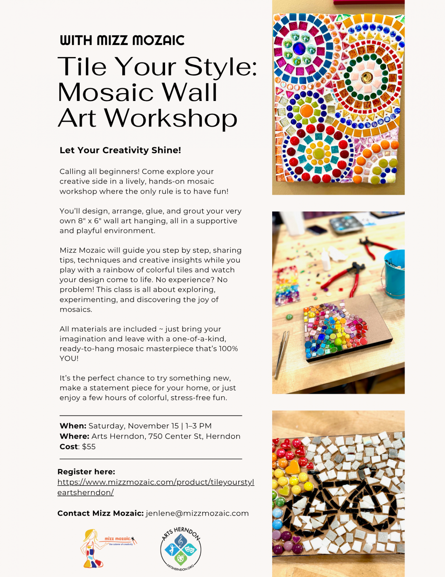 Calling all beginners! Come explore your creative side in a lively, hands-on mosaic workshop where the only rule is to have fun!